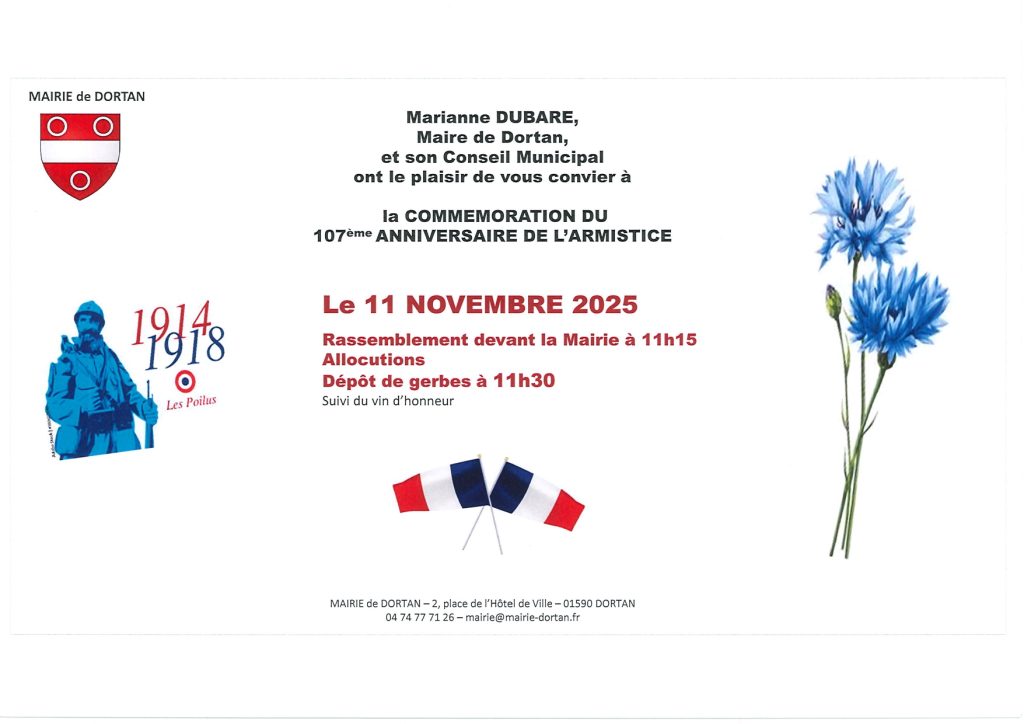Le 11 NOVEMBRE 2025 Rassemblement devant la Mairie à 11h15 Allocutions Dépôt de gerbes à 11h30 Suivi du vin d'honneur