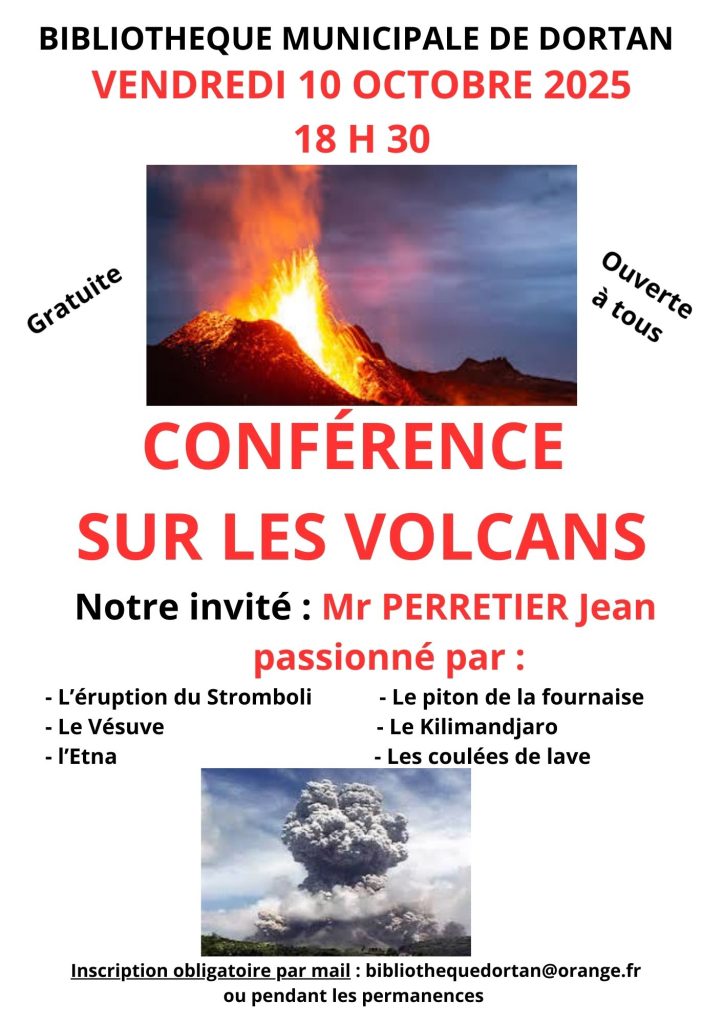 Inscription obligatoire par mail : bibliothequedortan@orange.fr ou pendant les permanences